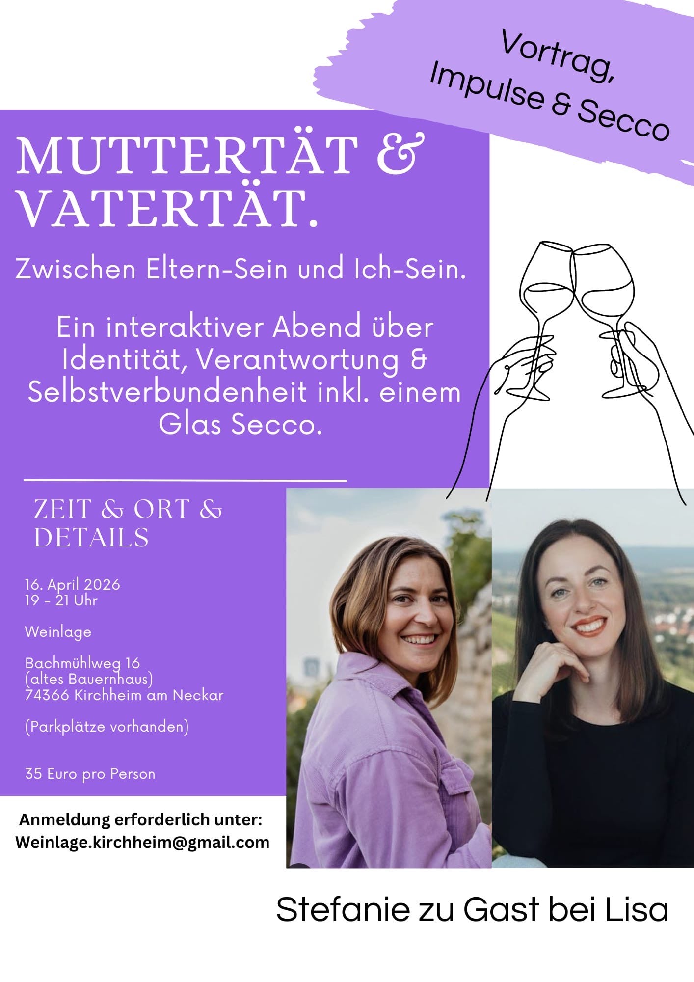 Ein Abend für Mütter und Väter, die ihre Elternrolle bewusst gestalten und sich selbst dabei nicht verlieren möchten.